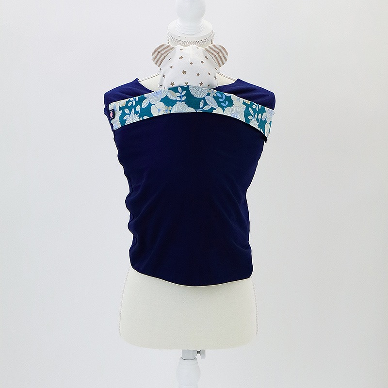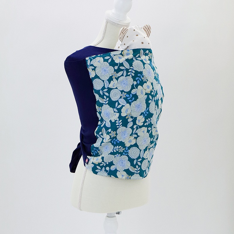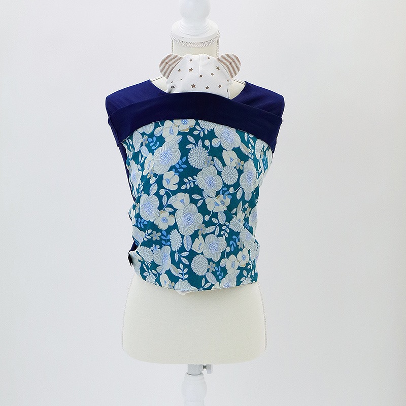 <はじまりの歌> こちらの商品は「ブルー×花柄」となります。リバーシブルで使用可能で裏面は無地のネイビーになっています。ワンポイントで折り曲げて使うこともでき4通りの楽しみ方があります。